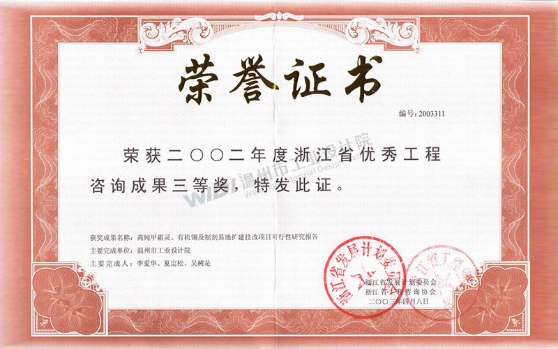 高純甲霜靈、有機錫及制劑異地擴建技改項目可行性研究報告 省優(yōu)秀咨詢成果三等獎