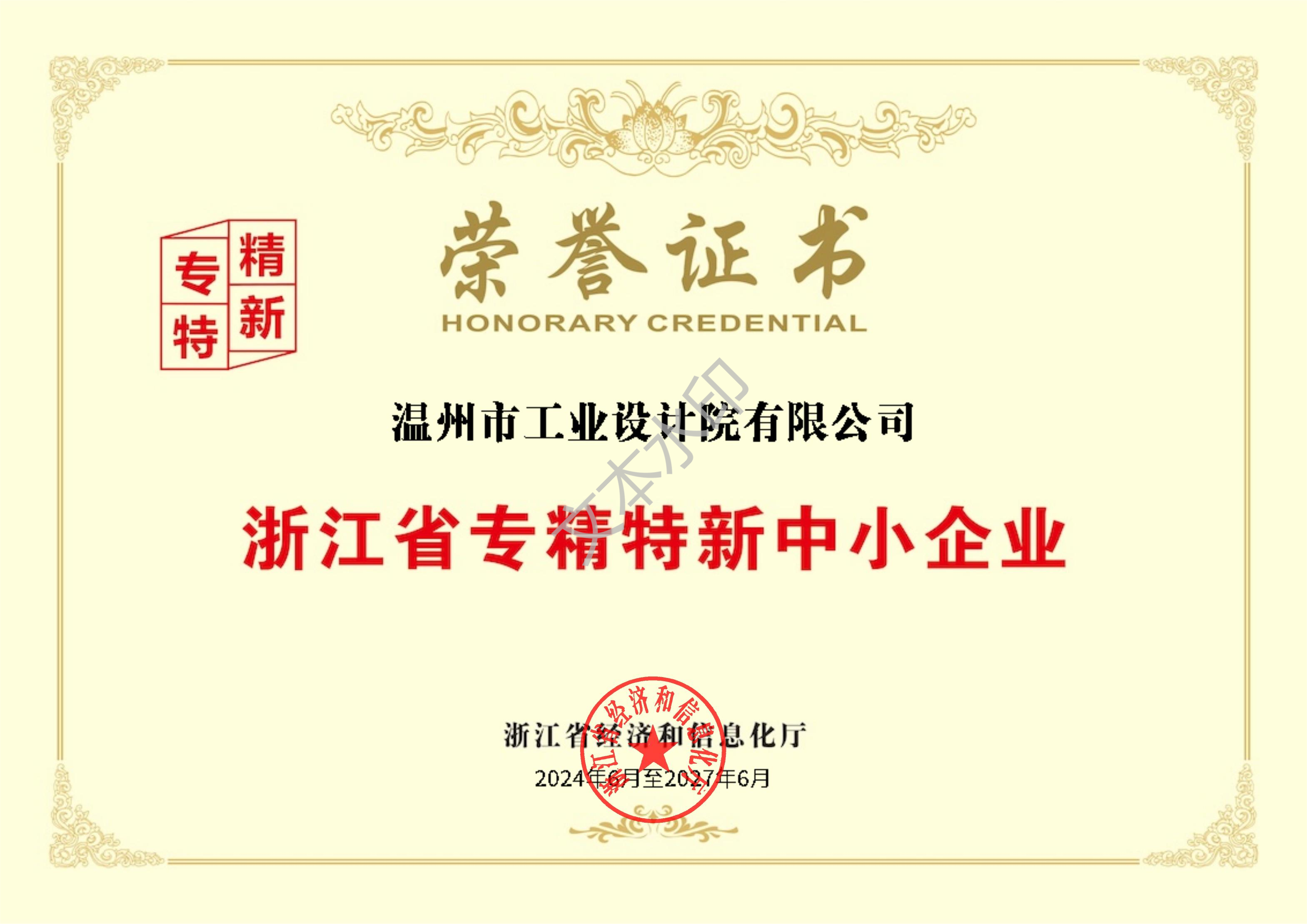 浙江省專精特新中小企業(yè)榮譽證書