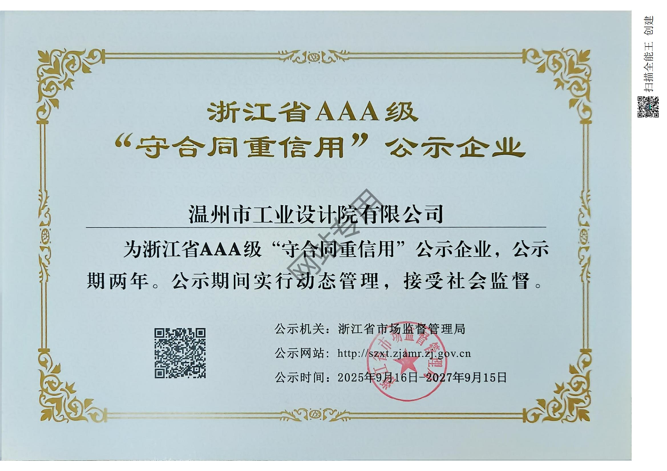 浙江省AAA級守合同重信用企業(yè)2025