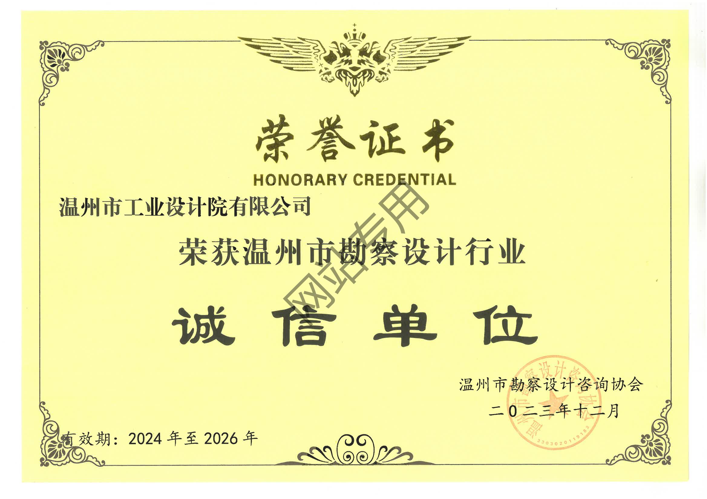 溫州市勘察設(shè)計(jì)行業(yè)誠(chéng)信單位證書2024-2026