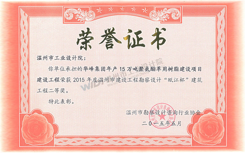 華峰集團年產15萬噸聚氨酯革用樹脂建設項目建設工程 甌江杯二等獎