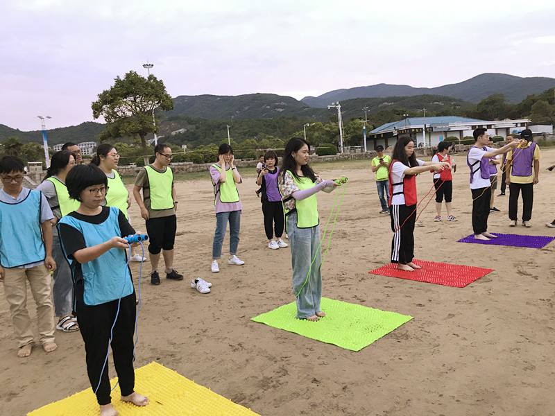 “破冰行動(dòng)”首先拉開活動(dòng)序幕,“破冰”即打破員工之間的拘謹(jǐn)和束縛,尤其是兩家單位的陌生感,讓他們?cè)诮酉聛淼幕顒?dòng)中能積極的參與進(jìn)來。簡(jiǎn)單的自我介紹認(rèn)識(shí)之后,隊(duì)伍分成四組進(jìn)行競(jìng)賽,“躲避球”考驗(yàn)的是團(tuán)隊(duì)的整體協(xié)調(diào)配合能力;“救生圈接力賽”在裁判的一聲令下,全員接力比賽決勝負(fù),緊張之余又趣味十足;“指壓板跳繩”難度系數(shù)高,讓隊(duì)員們摩拳擦掌,紛紛上場(chǎng)較量各隊(duì)實(shí)力,一起“腳”逐快樂;“聽歌識(shí)曲”輪番播放不同年代歌曲讓大家回憶經(jīng)典同時(shí)能猜出歌名。現(xiàn)場(chǎng)活動(dòng)熱烈,參與人員熱情高漲,笑聲不斷。